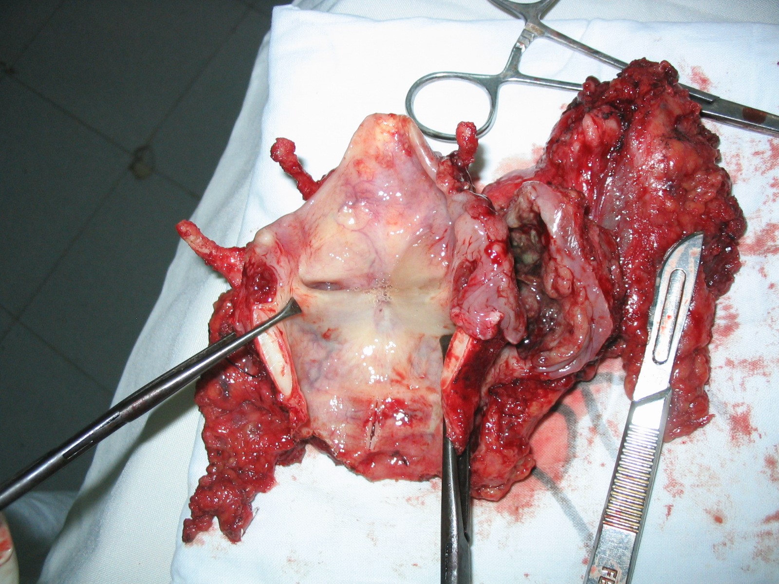 Trong trường hợp khối u tiến triển rộng, lan vào thanh quản, phải tiến hành cắt hạ họng kèm cắt bỏ thanh quản, bệnh nhân không còn nói được nữa; hoặc lan xuống thực quản, phải phẫu thuật cắt cả thực quản.